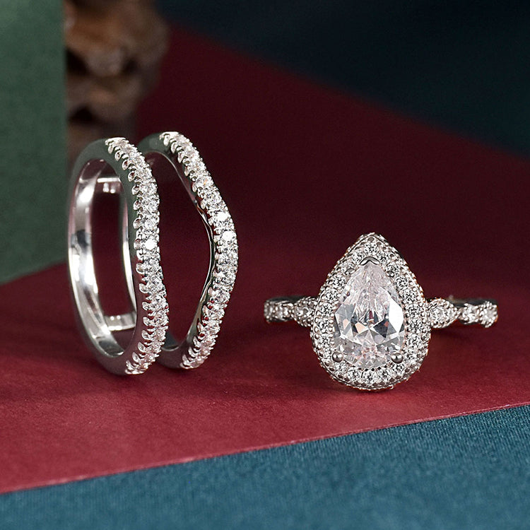 Newshe Wedding Bridal Band Ring Enhancer Engagement Ring Set for Women 925 Sterling Silver 3Ct Pear White Rose Gold 5A Cz Size 4-13