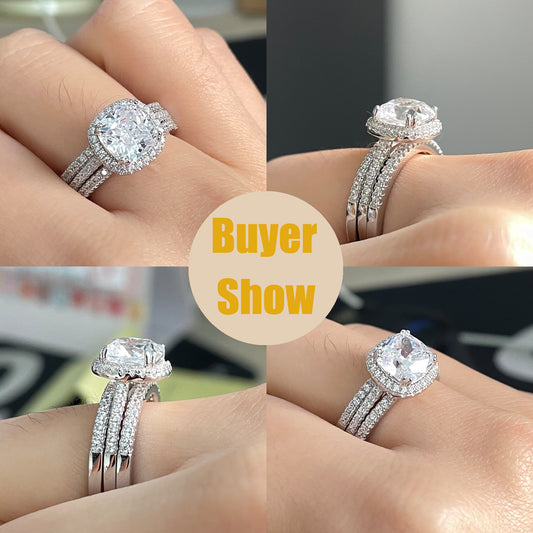 Newshe 2.66CT Wedding Engagement Rings Set for Women 925 Sterling Silver Cushion Halo CZ Wedding Bands Promise Bridal Ring Enhancer for her Size 5-10Regular price $79.99 USDRegular priceUnit price / per-