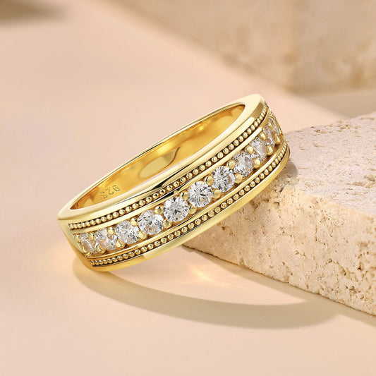 Newshe Men's Wedding Rings 925 Sterling Silver Rings Men's Hip Hop Anniversary Wedding Band Gifts For Men Gold Plated 1ct Micro Pave Cubic Zirconia Size 7-13Regular price $79.99 USDRegular priceUnit price / per-