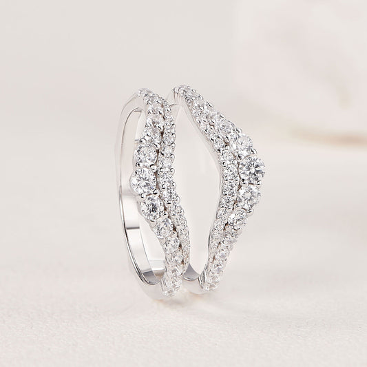 Newshe Cubic Zirconia Curved Bridal Ring Enhancer Guard for Women Engagement Rings White Gold 5A 925 Sterling Silver Size 5-10