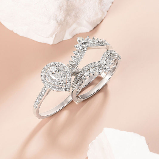 Heinlov Wedding Rings Set AAAAA Cz Rings for Women Engagement Rings 925 Sterling Silver Bridal Ring Enhancer Size 5-10