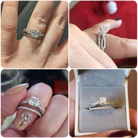 Newshe Wedding Rings for Women Engagement Ring Sets Sterling Silver Cz 1.7Ct Princess Cross Size 4-13