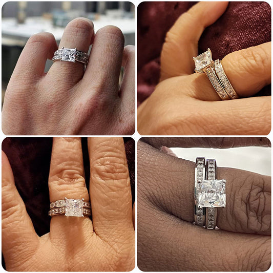 Newshe Wedding Rings for Women Engagement Ring Sets Princess 925 Sterling Silver Cz 1.8Ct Size 4-13