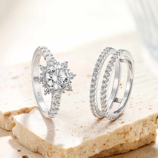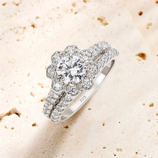 Newshe Wedding Ring Sets Engagement rings for women 925 Sterling Silver Ring Enhancer Flower Halo 5A Cz Size 5-10