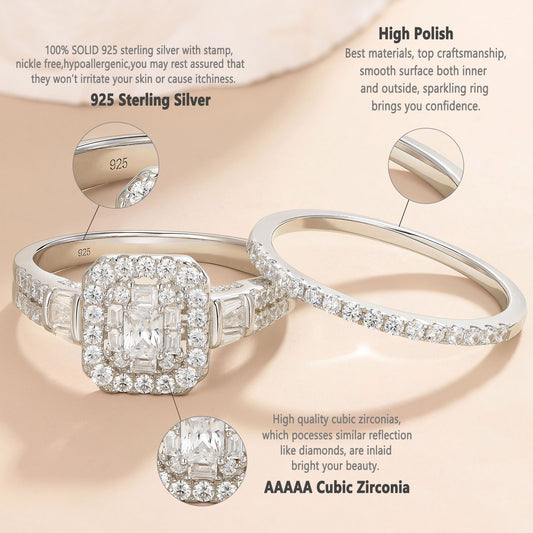Newshe Jewellery AAAAA Cz Wedding Sets for Women 925 Sterling Silver Vintage Radiant Bridal Engagement Band Ring Size 5-10