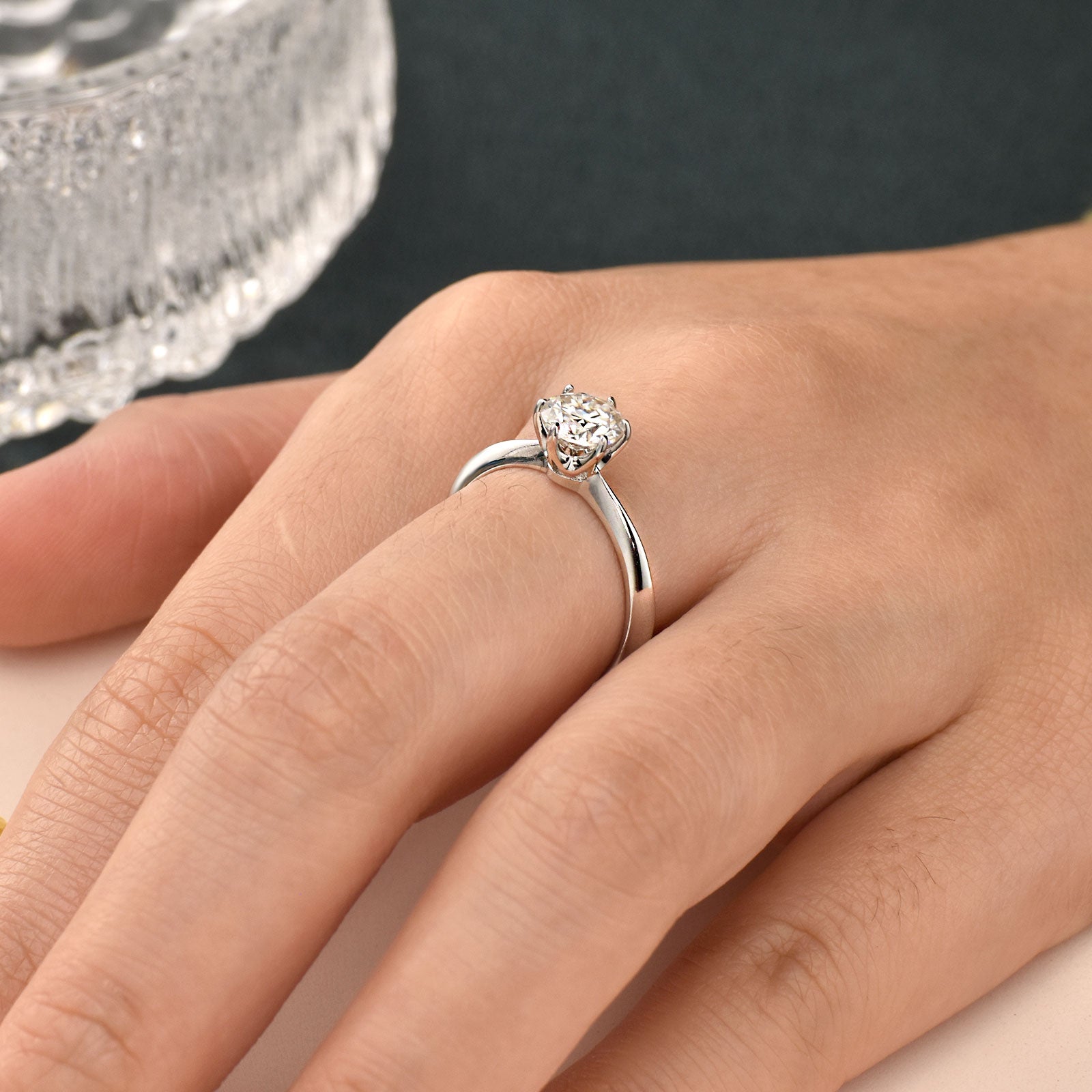 - ❤ 【Trendy Style】 Moissanite Stone: 1pc/1.0 carat; Weight 2.08g; Width 2.7 mm. This glamorous solitaire engagement ring by Newshe features a 6.5mm round brilliant cut moissanite gemstone. Beautifully crafted in rose gold 925 Sterling silver and secured with six-prong setting, won’t fall out easily, everlasting for the one you love.