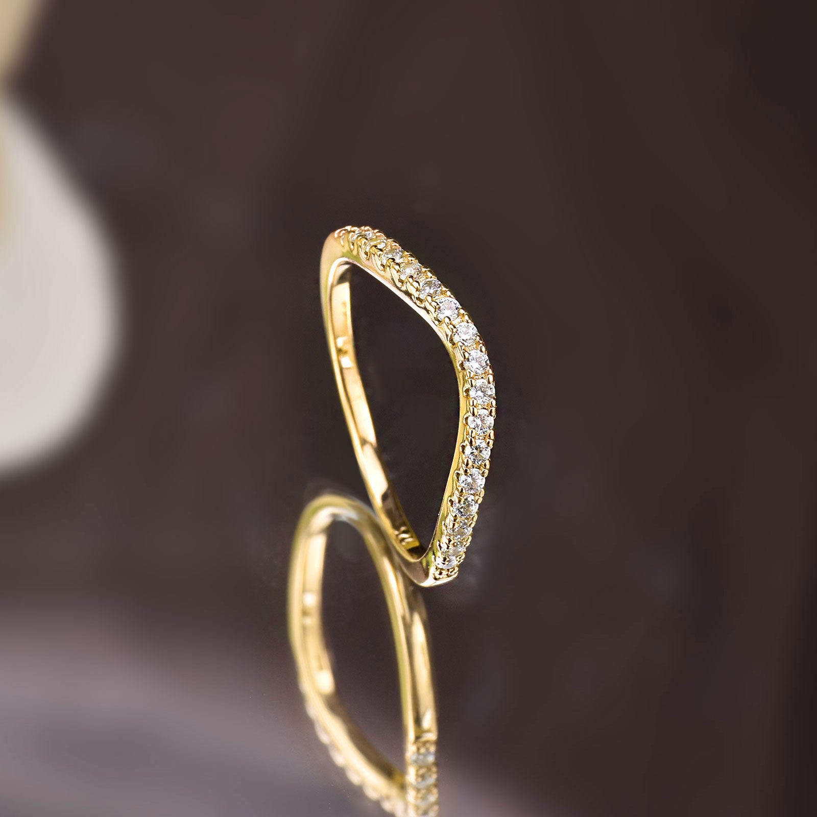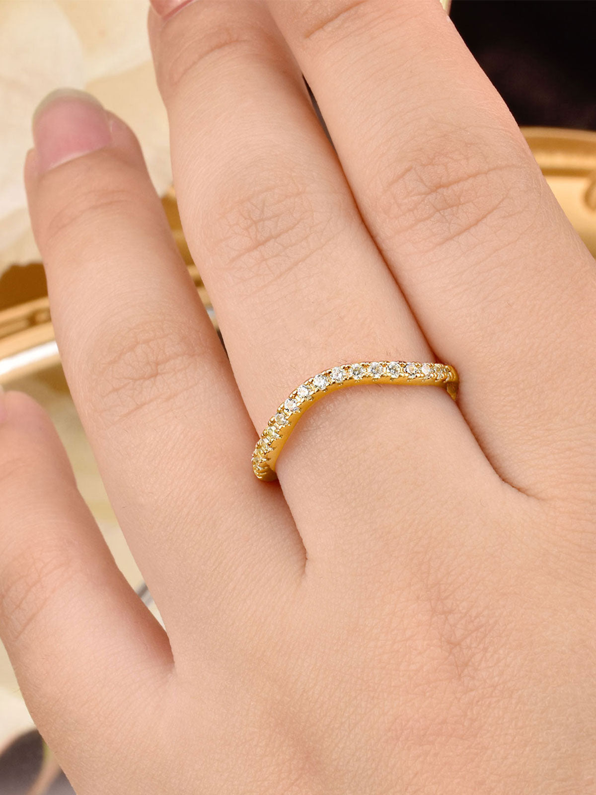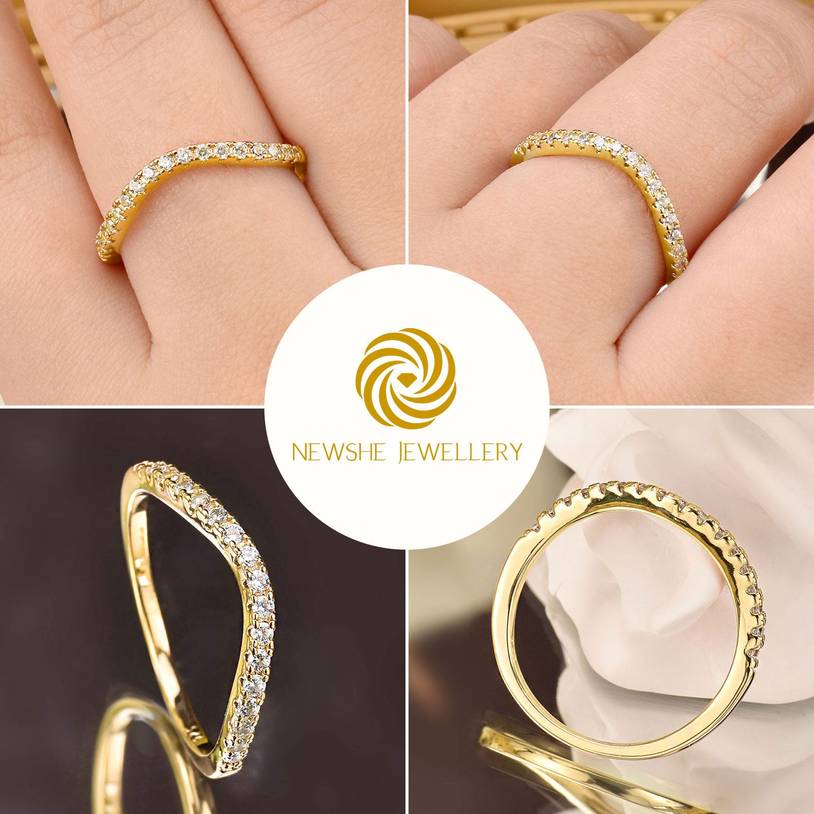 Newshe Curved Wedding Bands for Women Stacking Sterling Silver Eternity Rings Cz Wishbone Yellow Gold Size 5-10