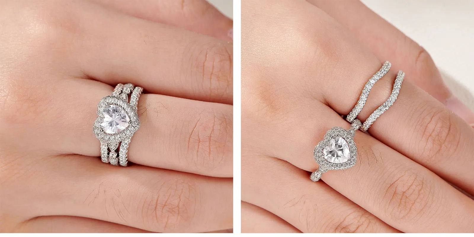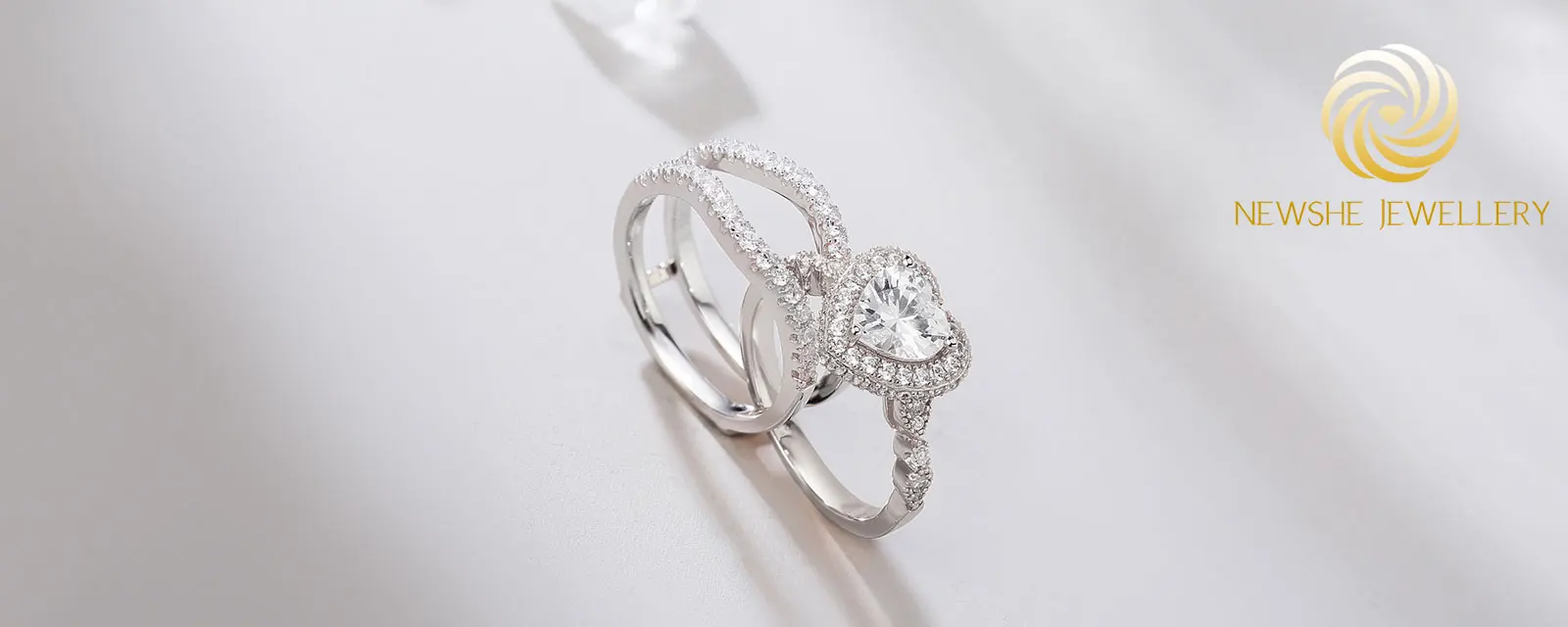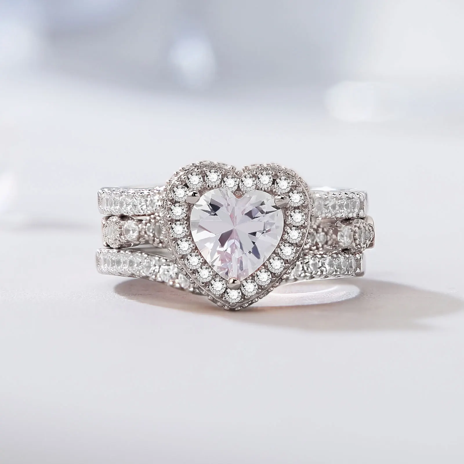 2pcs Newshe Jewellery White AAAAA Cz 925 Sterling Silver Heart Cut Bridal Engagement Wedding Ring Set for Women