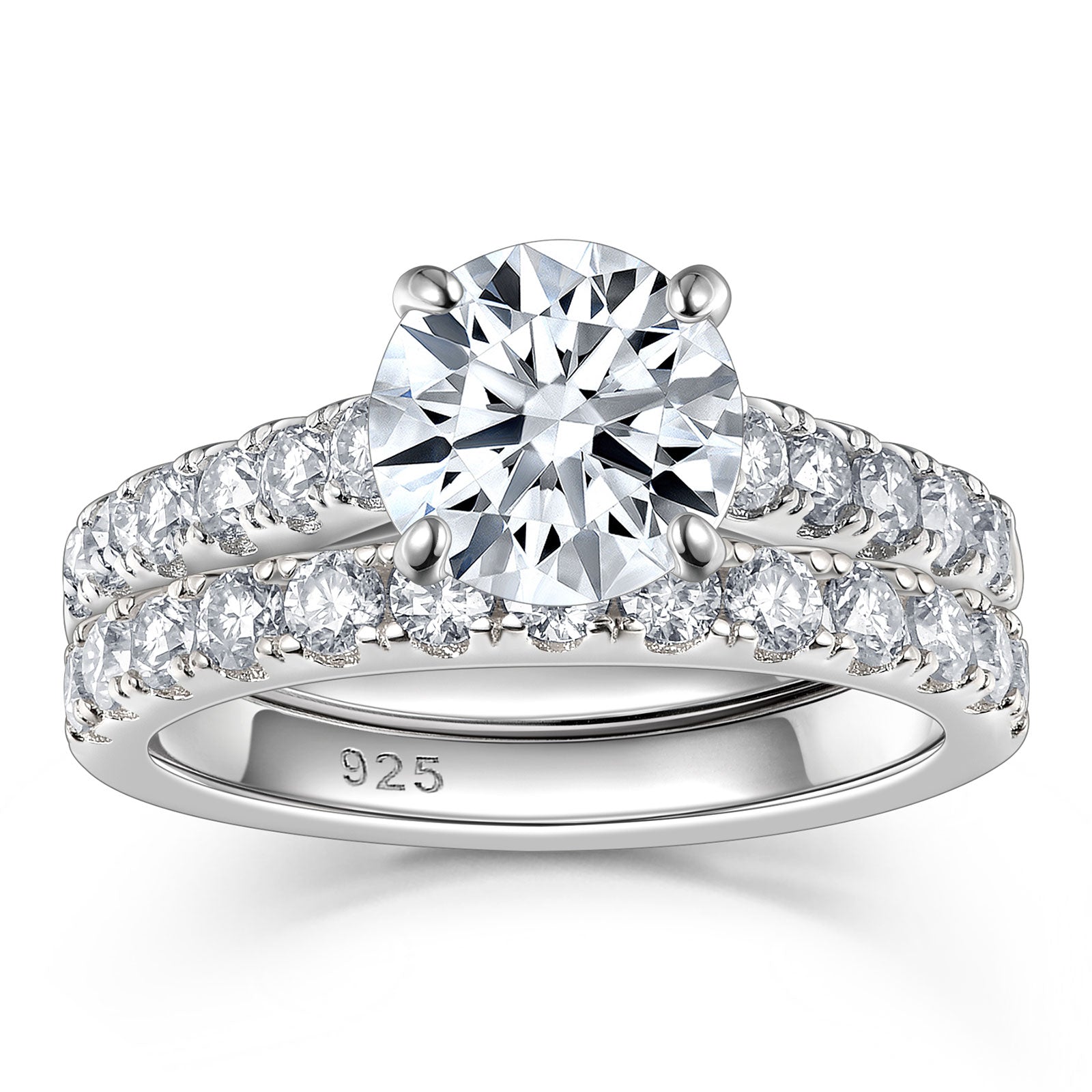 Newshe Jewellery 2ct Moissanite Wedding Ring Set Engagement Rings for Women 925 Sterling Sliver Round Cut Size 6-10