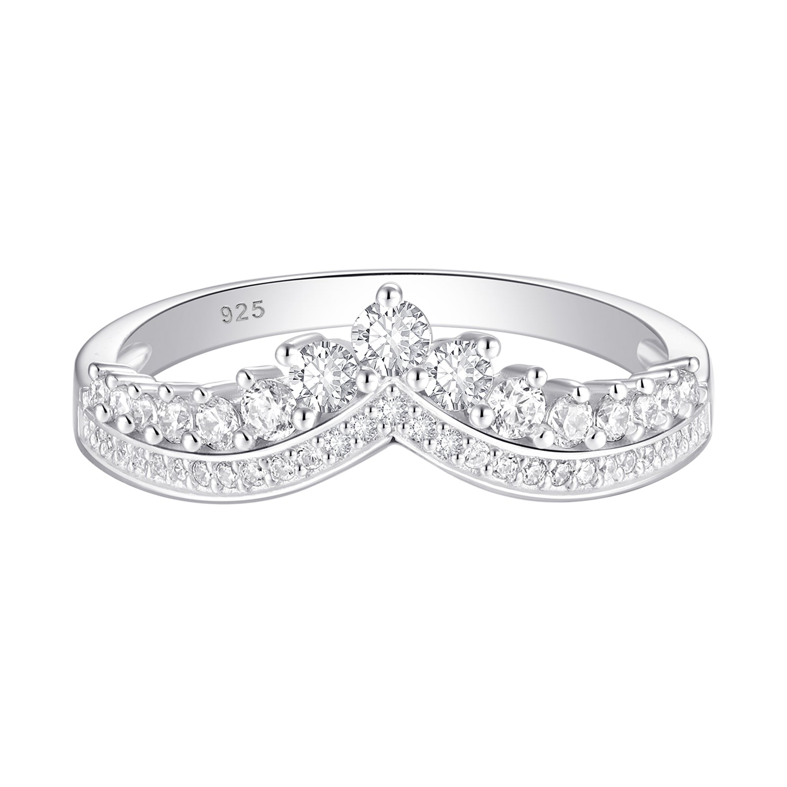 Newshe Jewellery AAAAA Crown Wedding Band for Women Stackable Eternity Rings 925 Sterling Silver Engagement Ring