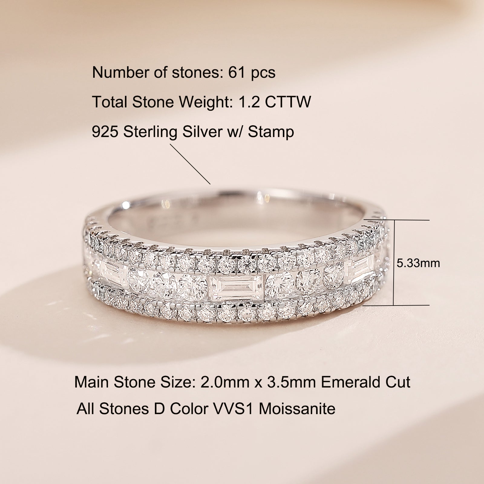 - Stunning Design: Main Stone Size:2.0*3.5mm Emerald Cut. Experience luxury with Newshe's D colors VVS1 clarity moissanite wedding bands for women, an elegant addition to your wedding band collection