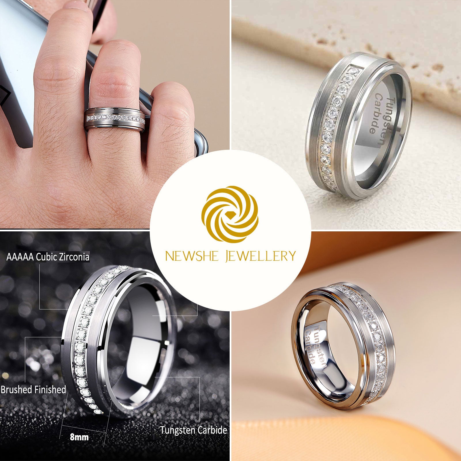 Newshe Jewellery Tungsten Wedding Bands for Him Rings for Men Men Rings Cubic Zirconia 8mm Matte Brushed Size 7-13