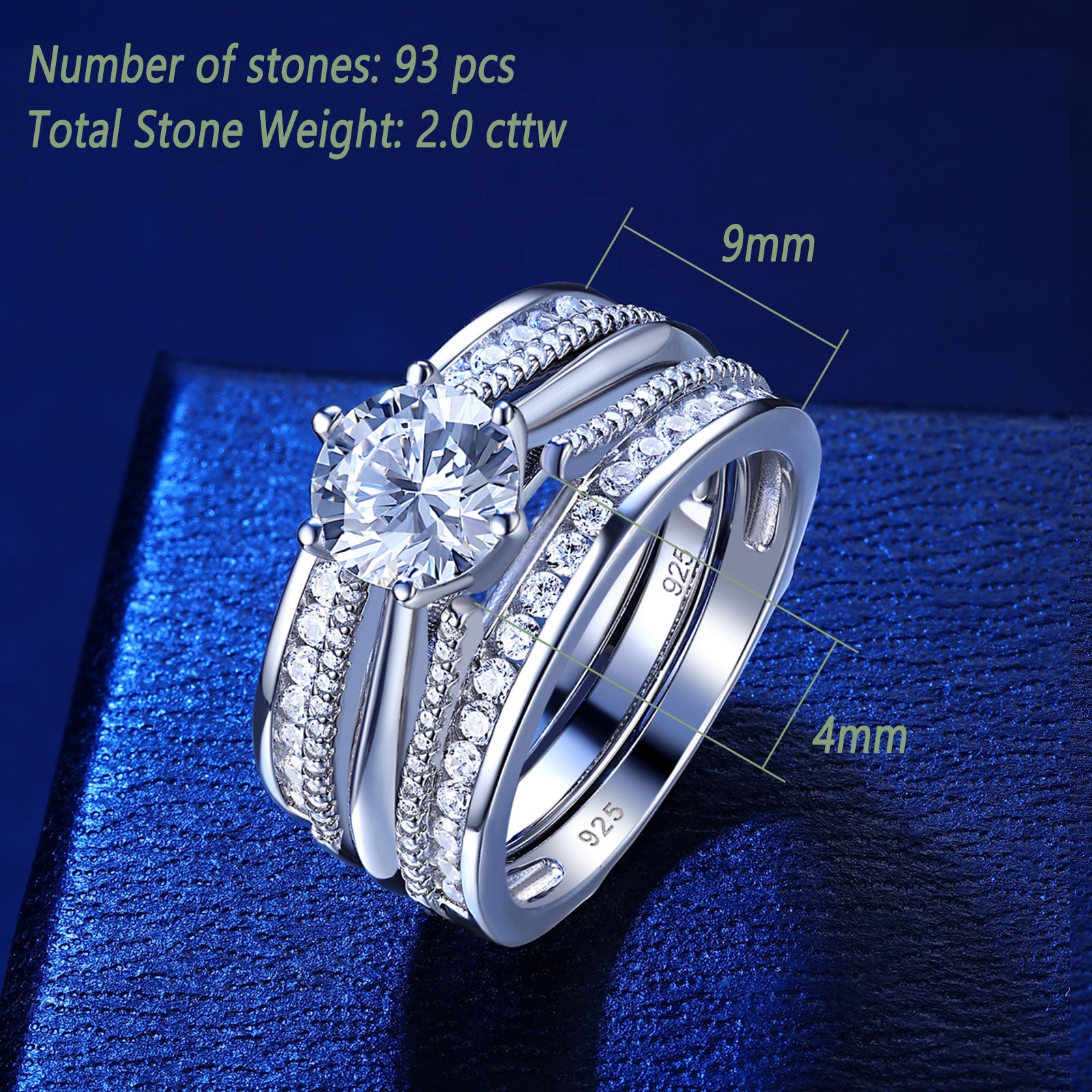Newshe Jewellery Wedding Engagement Ring for Women 2CT AAAAA CZ Bridal Sets Wedding Band Ring Enhancer Round Cut 925 Sterling Silver Size 5-10