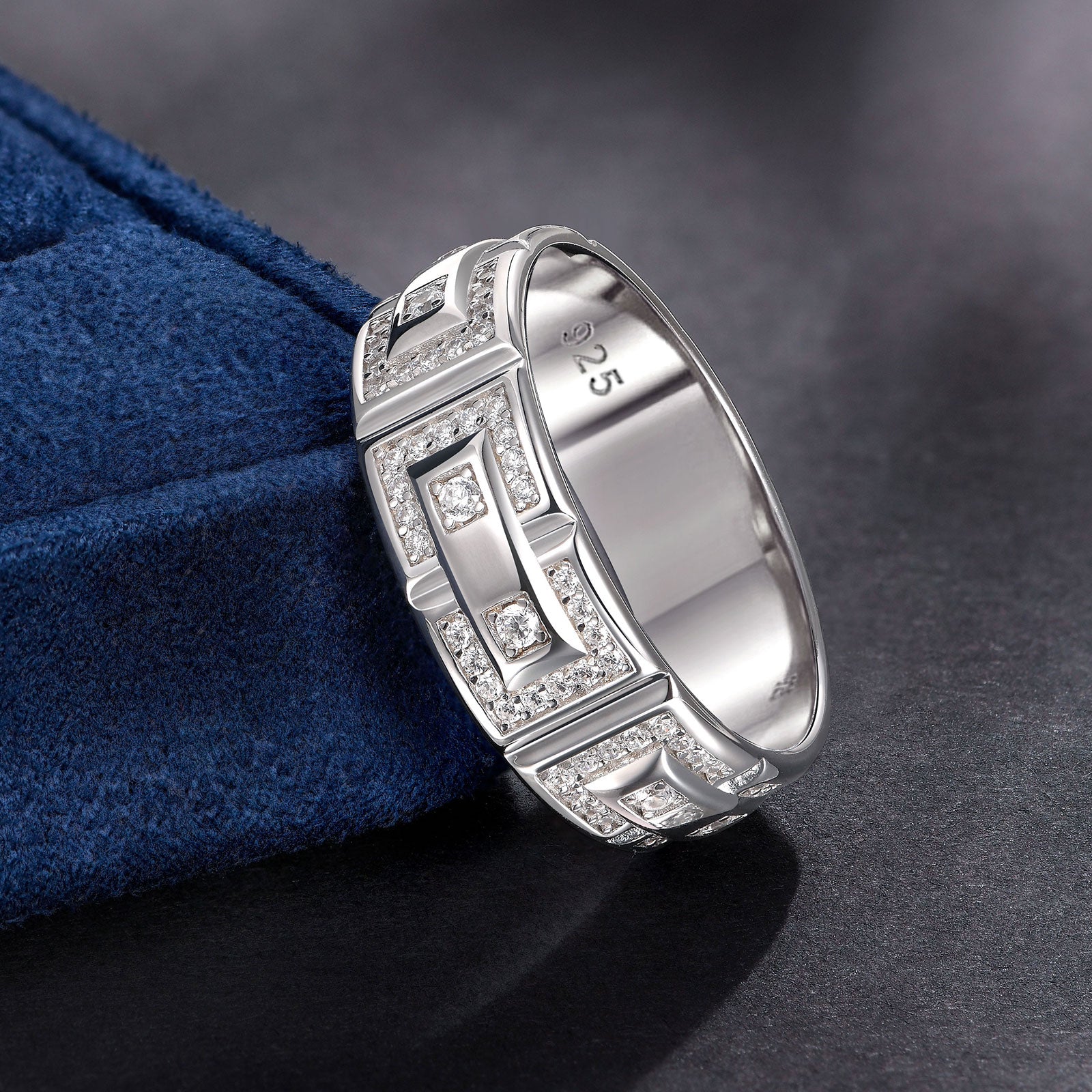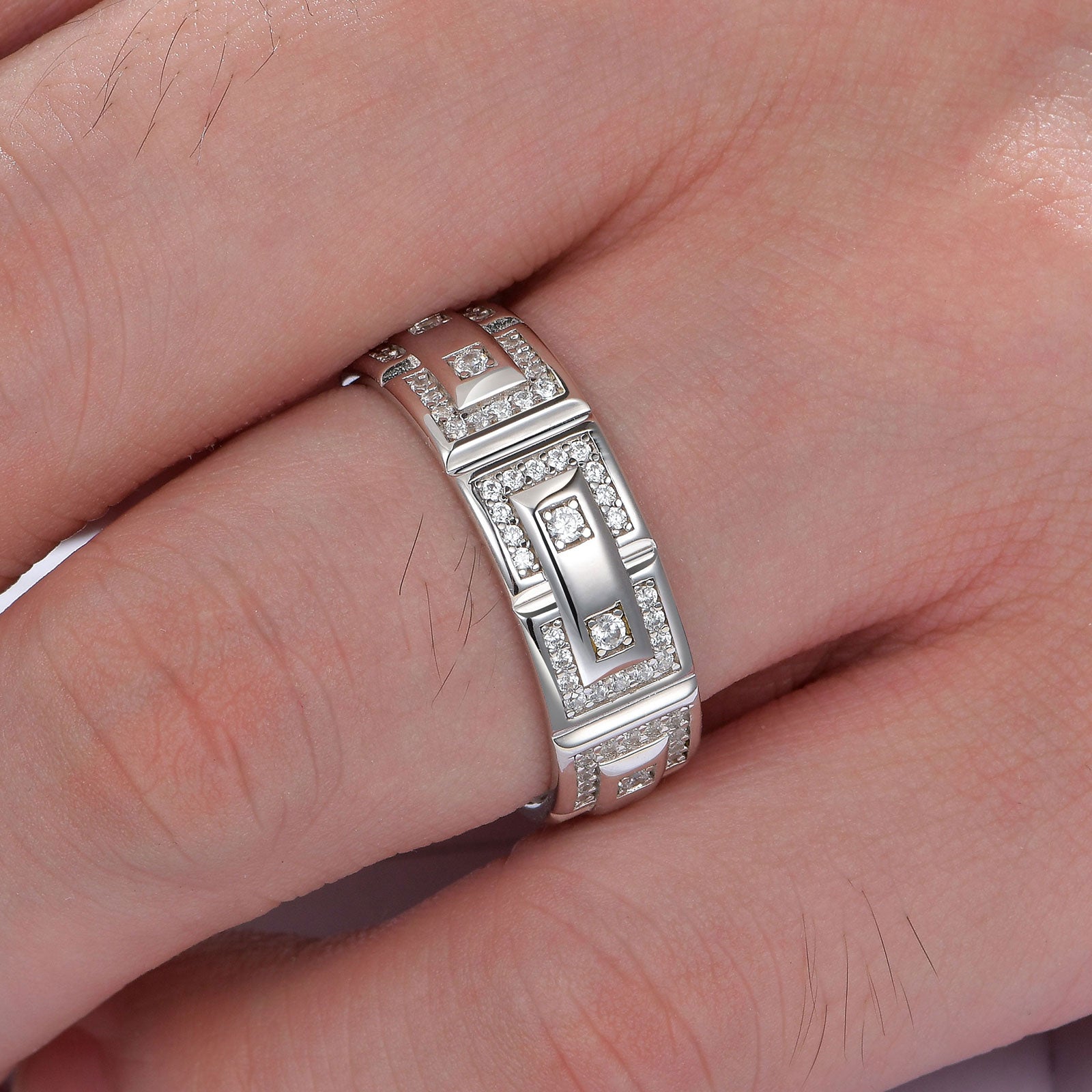 - Newshe Jewellery high quality AAAAA cubic zirconia sterling silver ring for men.Shine like a natural diamond wedding band for men.Perfect to match with mens wedding engagement rings.