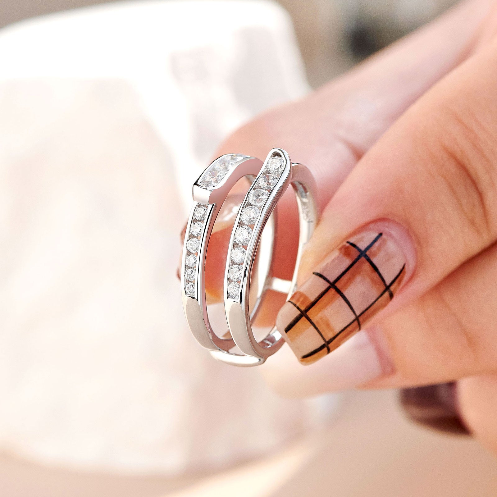 Newshe Jewellery Wedding Rings for Women AAAAA Cz 925 Sterling Silver Engagement Bridal Band Set Enhancers and Wraps Size 5-10