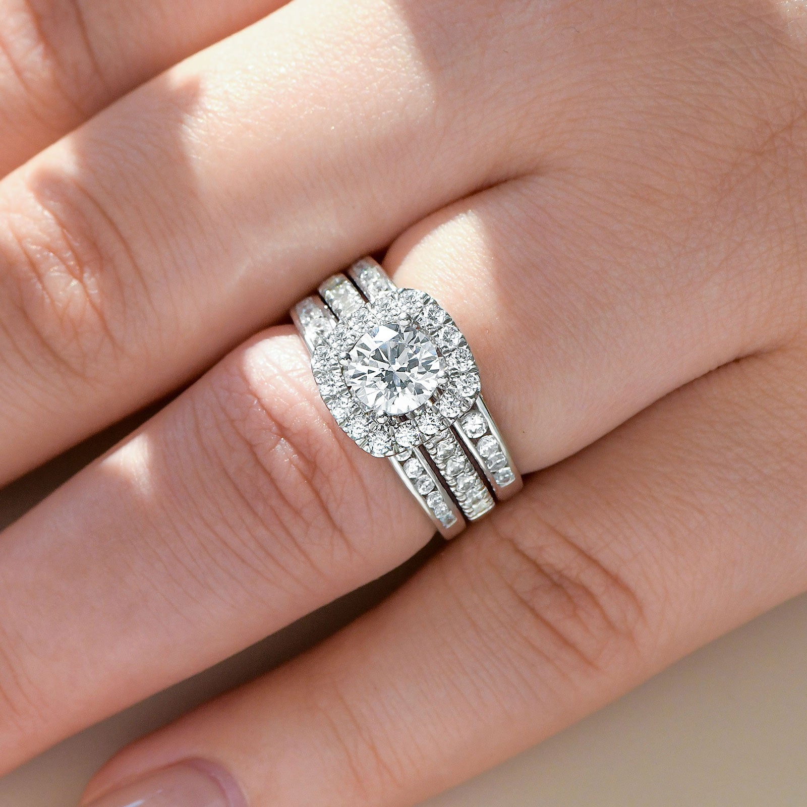 - ♥Stunning Design♥ Main Stone Size: 6.5*6.5 mm, Total Stone Weight:2.5 CTTW. Experience luxury with Newshe's AAAAA Cubic Zirconia wedding ring sets for her, an elegant addition to your cz engagement rings for women collection. The Round Cut Halo design engagement ring set with wedding band for women offering the perfect blend of affordability and style.