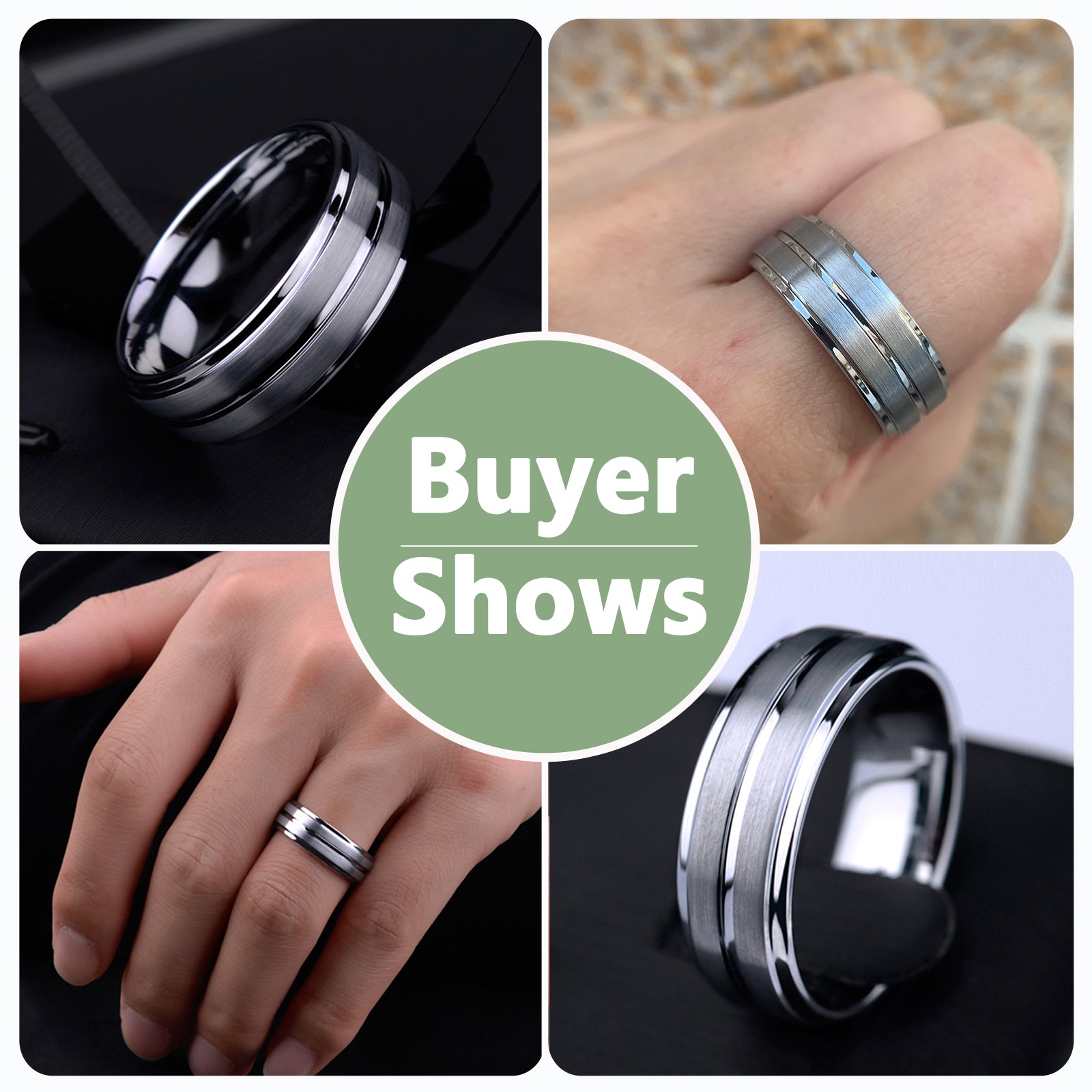 - Men's Ring: 8mm wide matte brushed tungsten carbide wedding bands for him. Scratch proof, super Strong and Scratch Resistant.Perfect to match with wedding bands sets for him and her. Men’s ring size available: 8 9 10 11 12 13.