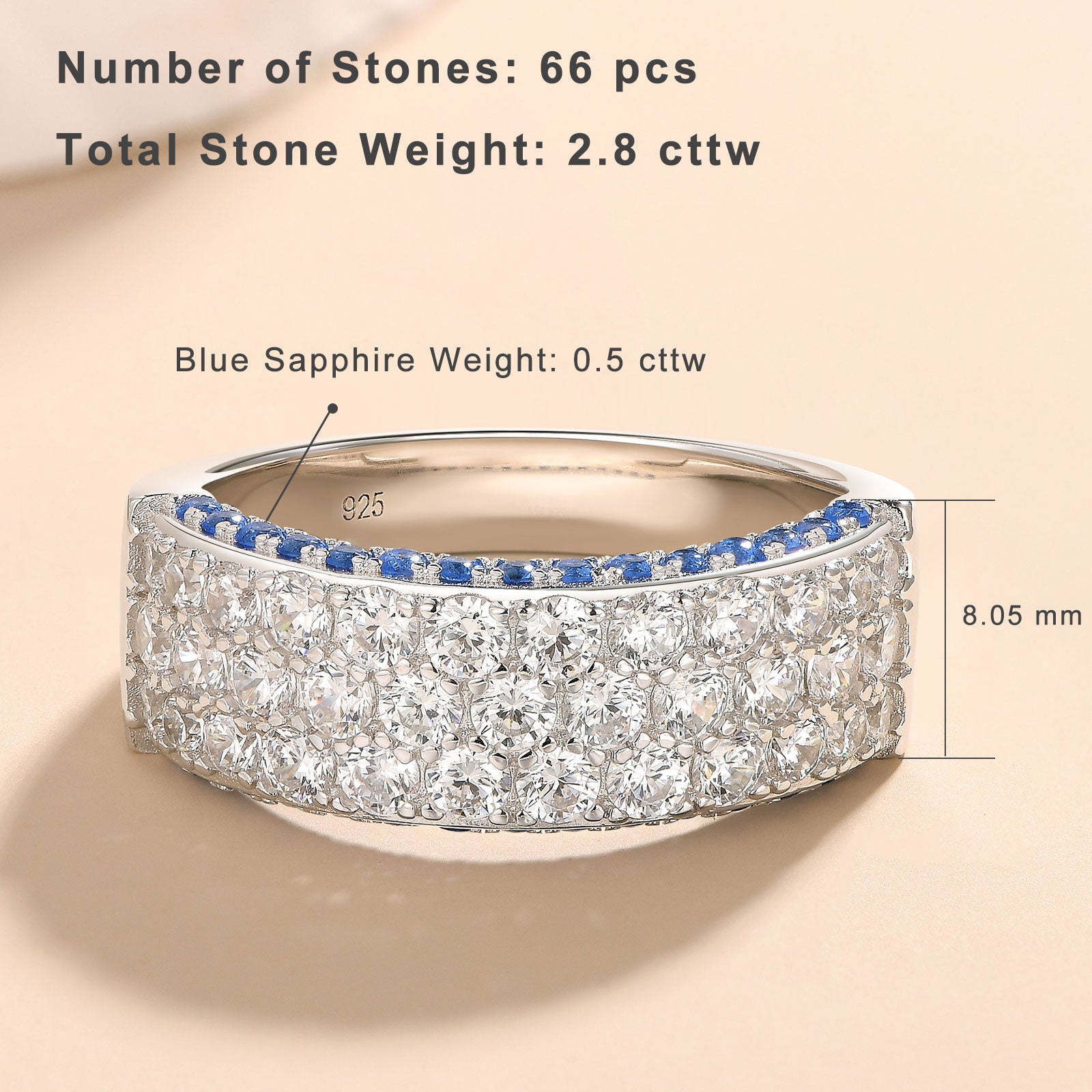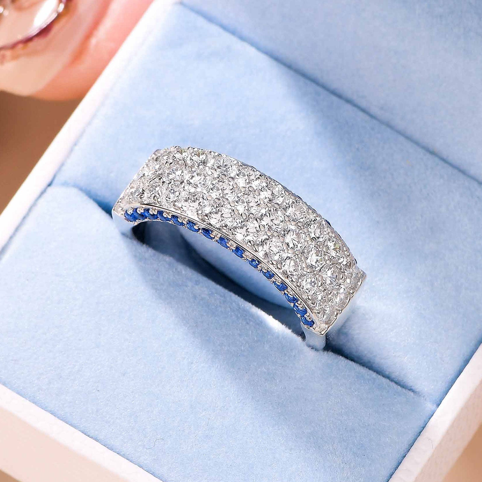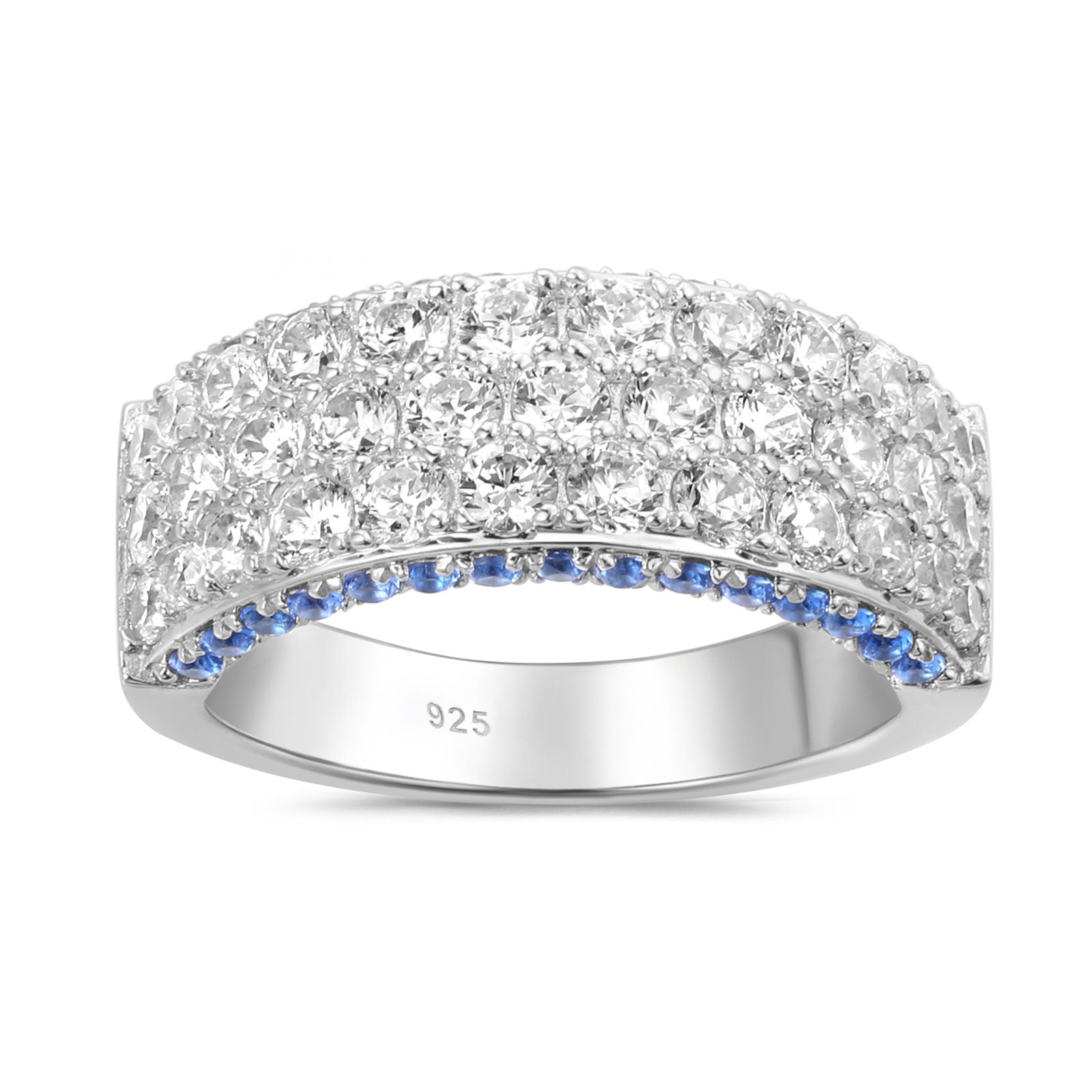 ♥Stunning Design♥ Main Stone Size:2.0*2.0mm, Blue Sapphire Stone Weight:0.5 CTTW. Total Stone Weight:2.8 CTTW. Experience luxury with Newshe's AAAAA cubic zirconia engagement bands for women, an elegant addition to your silver rings collection. The women's wedding bands with simple round cut stone design offering the perfect blend of affordability and style.