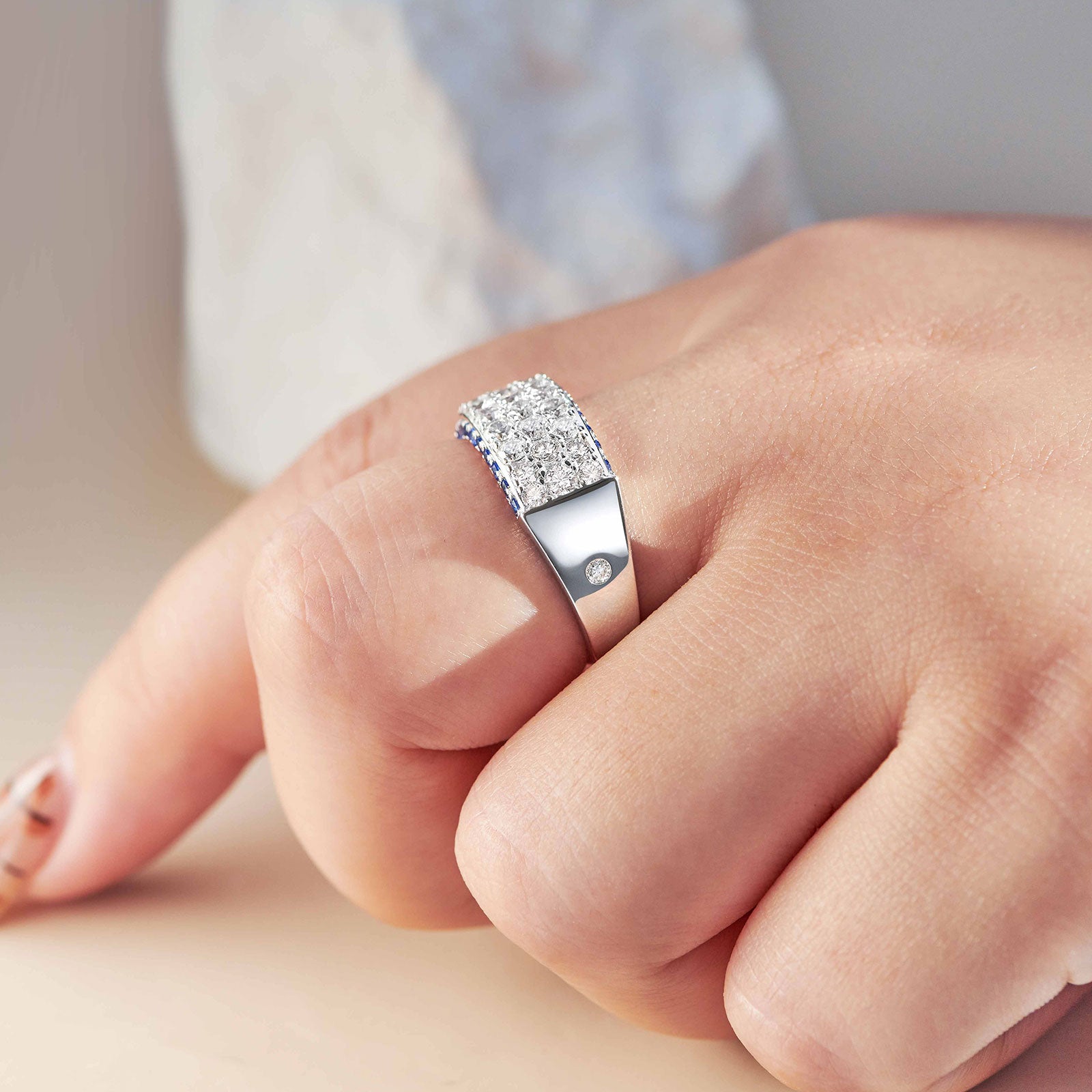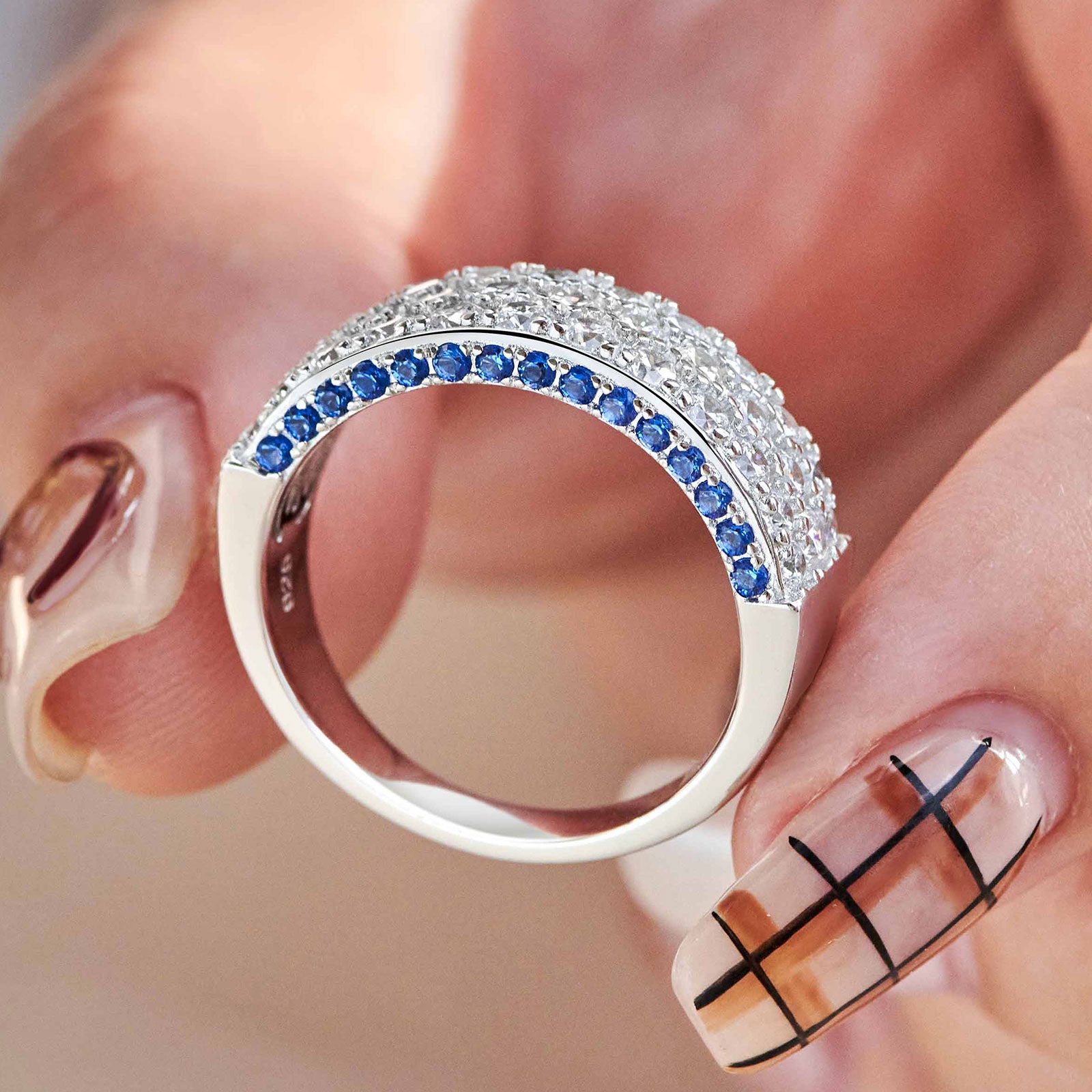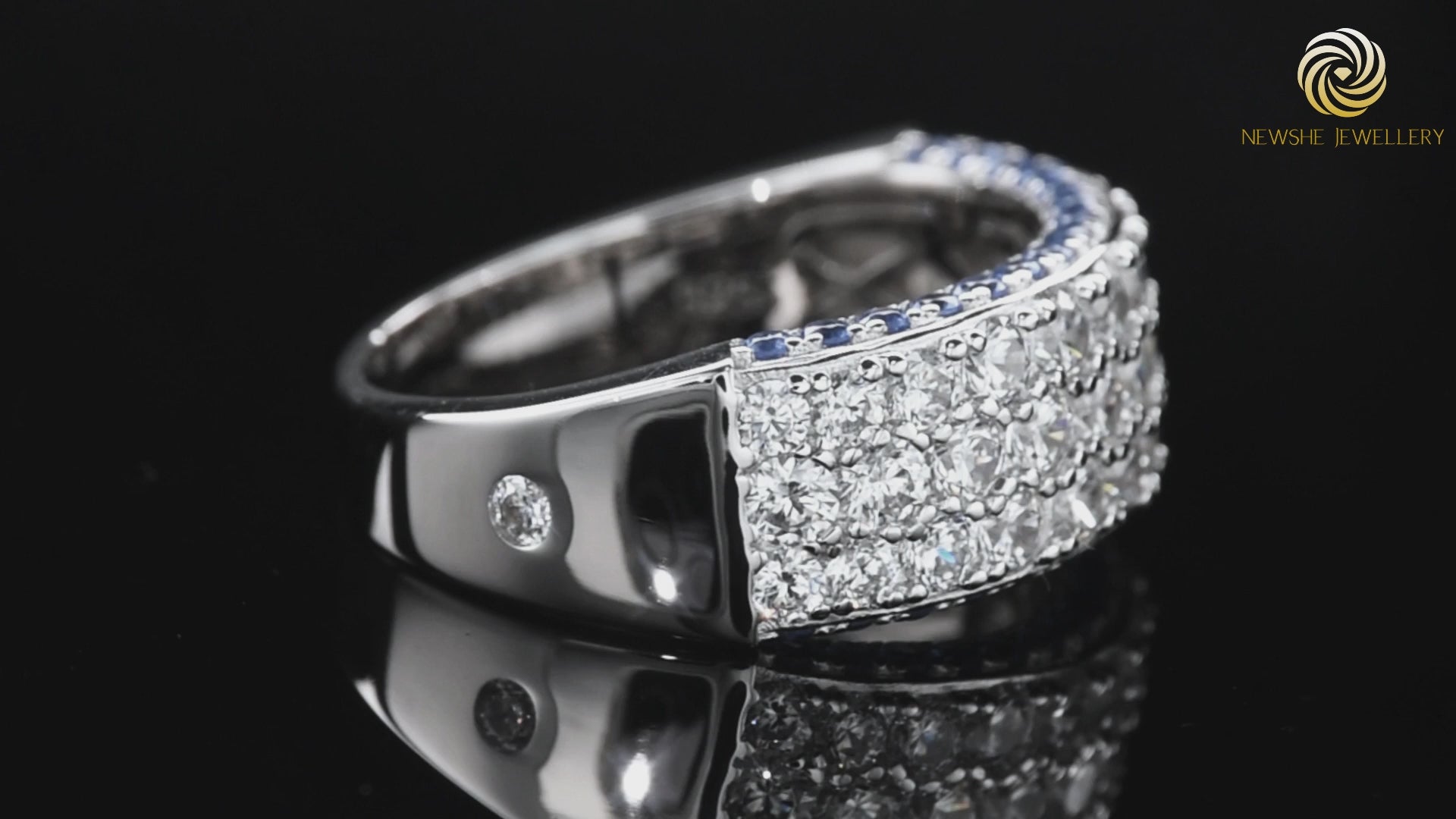 ♥Stunning Design♥ Main Stone Size:2.0*2.0mm, Blue Sapphire Stone Weight:0.5 CTTW. Total Stone Weight:2.8 CTTW. Experience luxury with Newshe's AAAAA cubic zirconia engagement bands for women, an elegant addition to your silver rings collection. The women's wedding bands with simple round cut stone design offering the perfect blend of affordability and style.