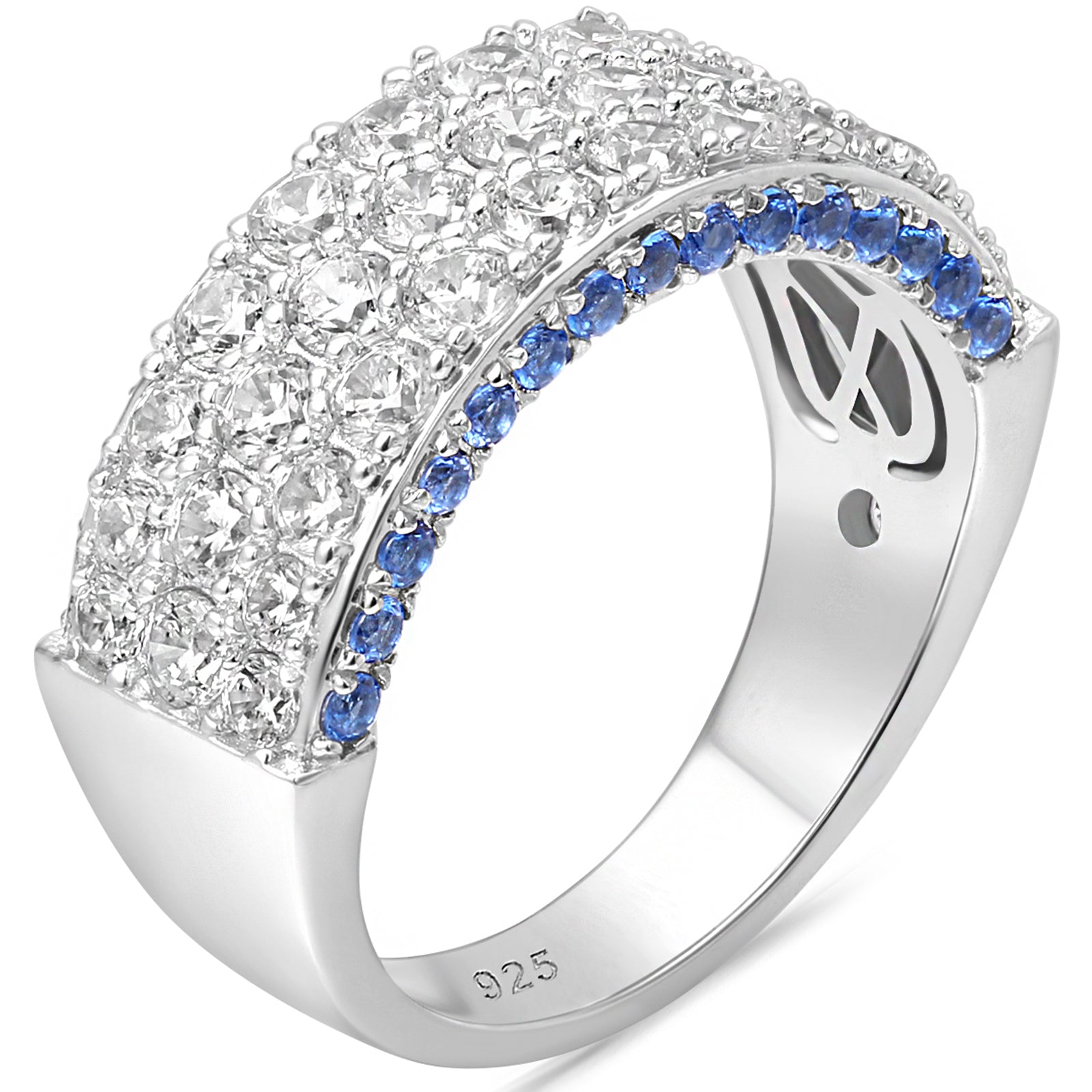 Newshe Jewellery Wide Wedding Bands for Women 5A Cz Engagement Ring for Her Sterling Silver Eternity Blue Sapphire Round Size 5-10