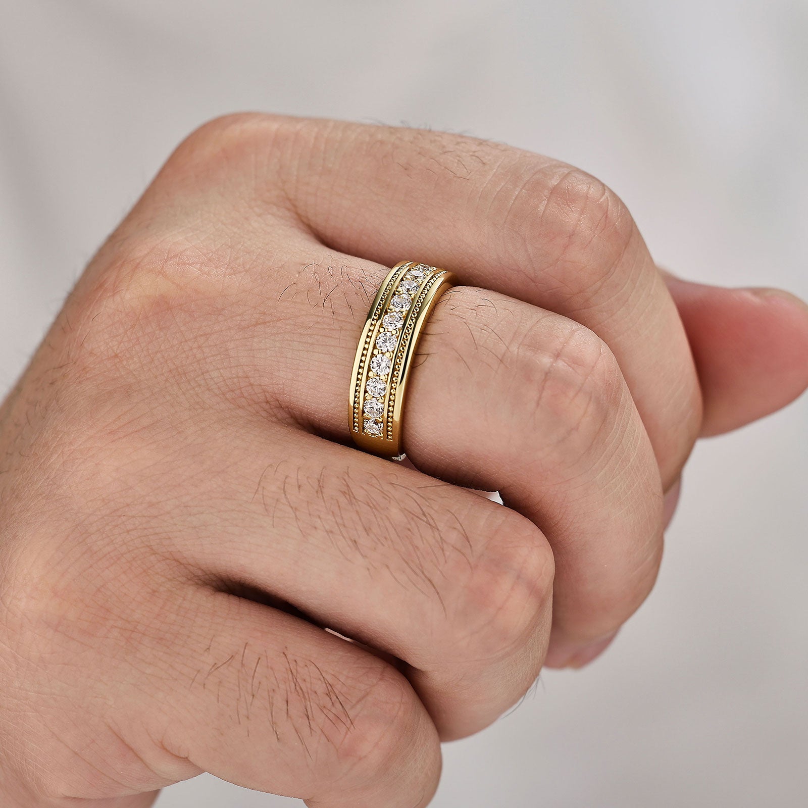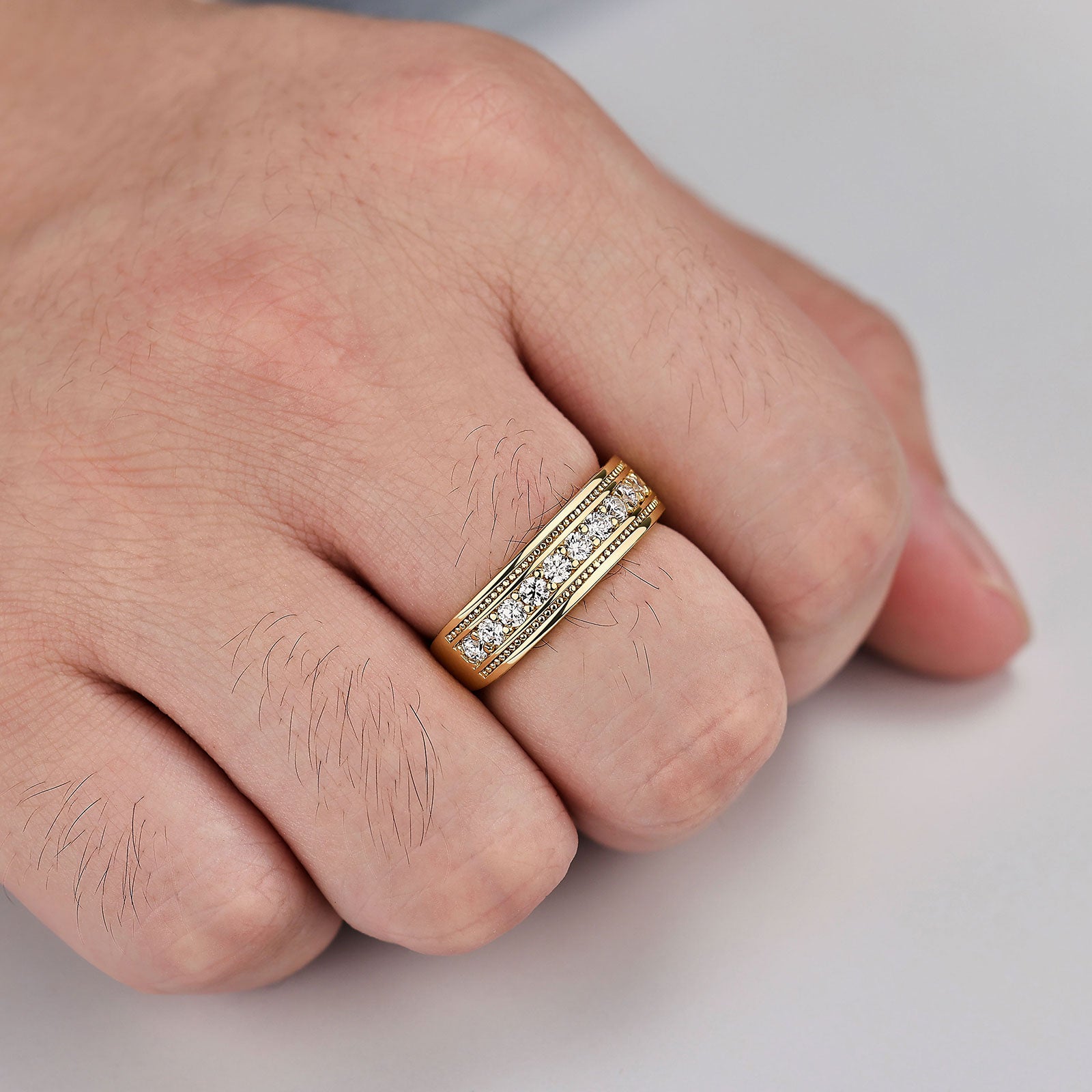 - ♥High Specification♥925 sterling silver rings for men 5A total weight: 5.97g, 6.8mm width. Total stone weight:1.1cttw. 11 Round cut cz wedding band for him. Suitable for mens wedding band everyday wear!