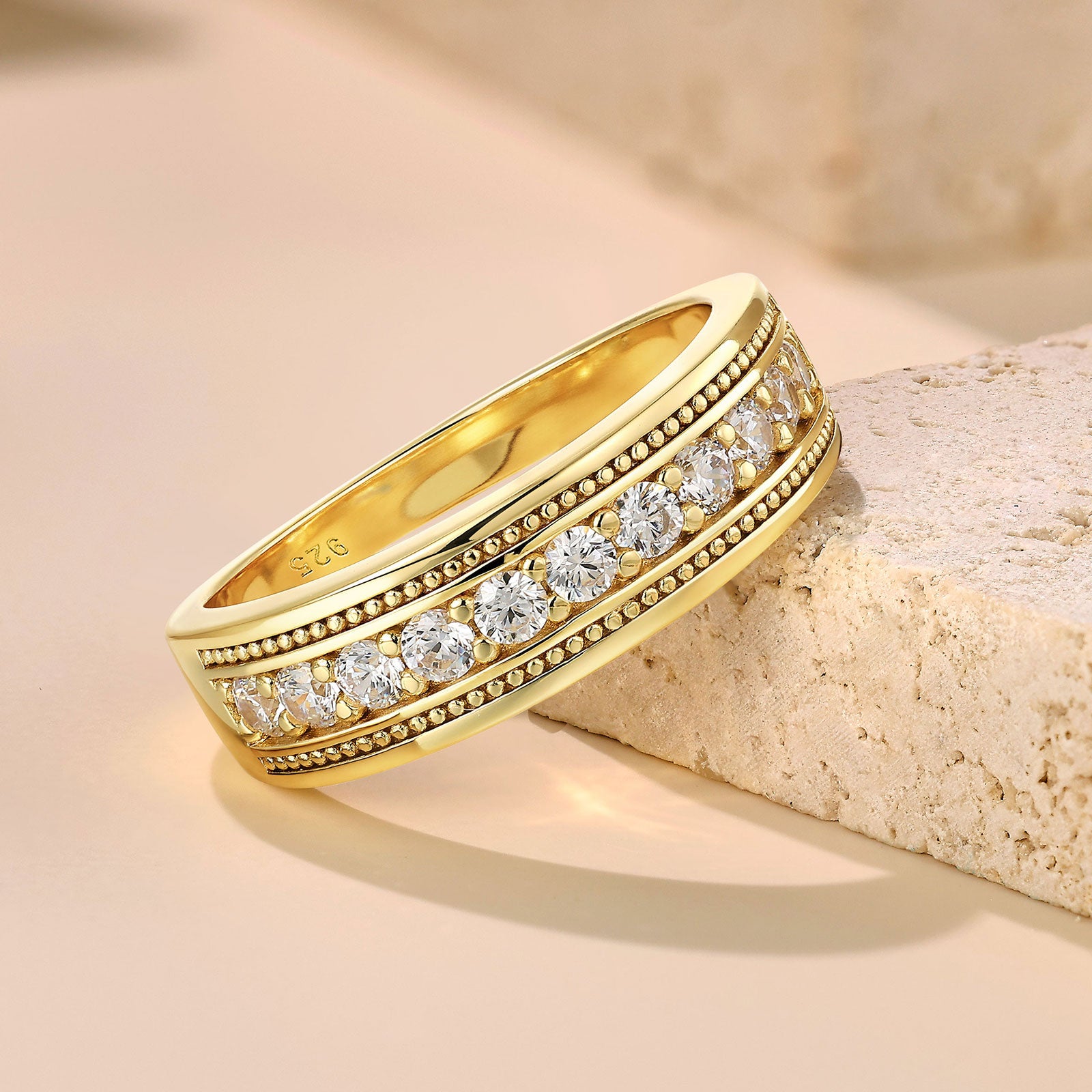 - ♥QUALITY AND BEAUTY♥ Eternity ring wedding band for Men are 100% Solid Sterling Silver/ 925 stamp, nickel-free, lead-free, hypoallergenic. The sterling silver rings won't turn your finger green.