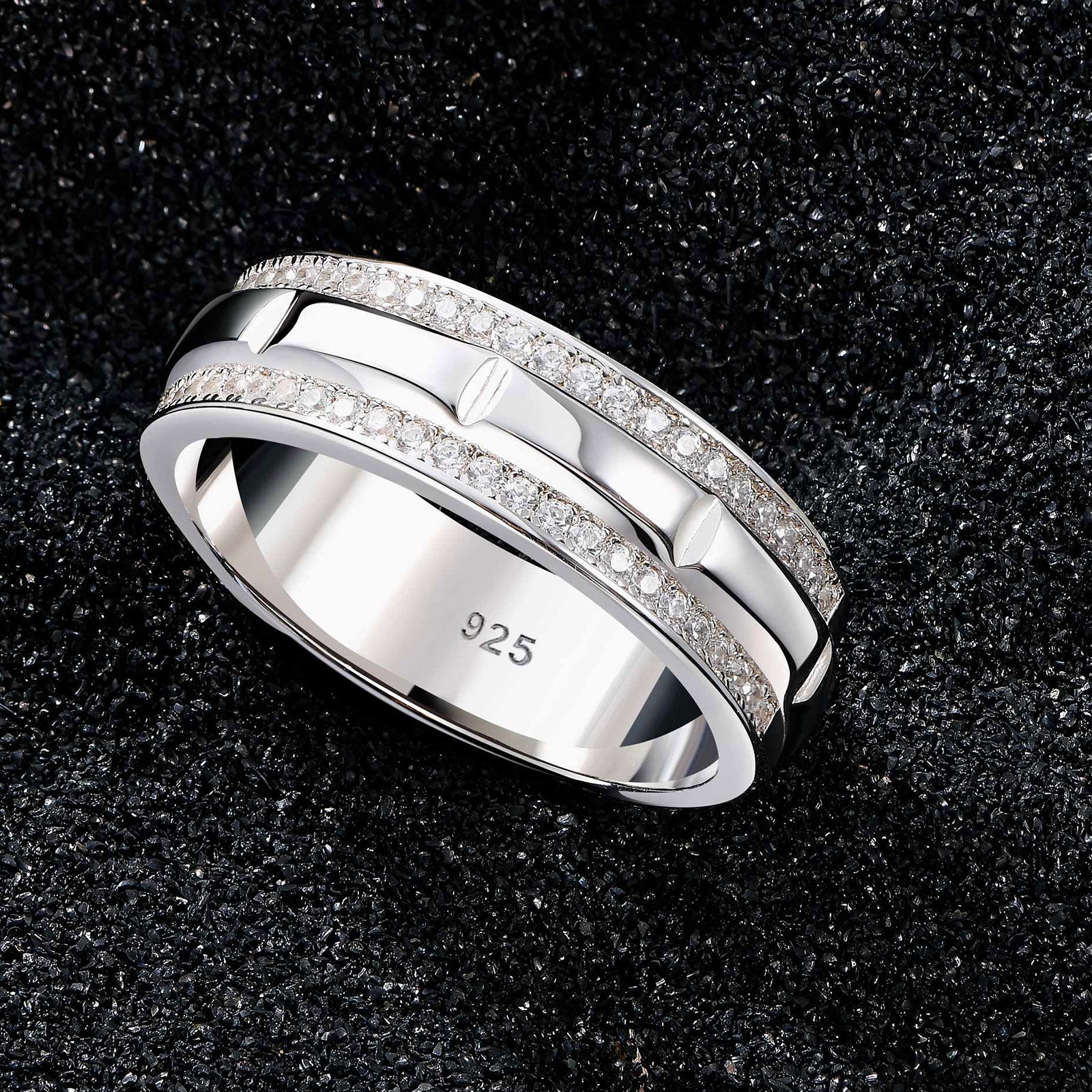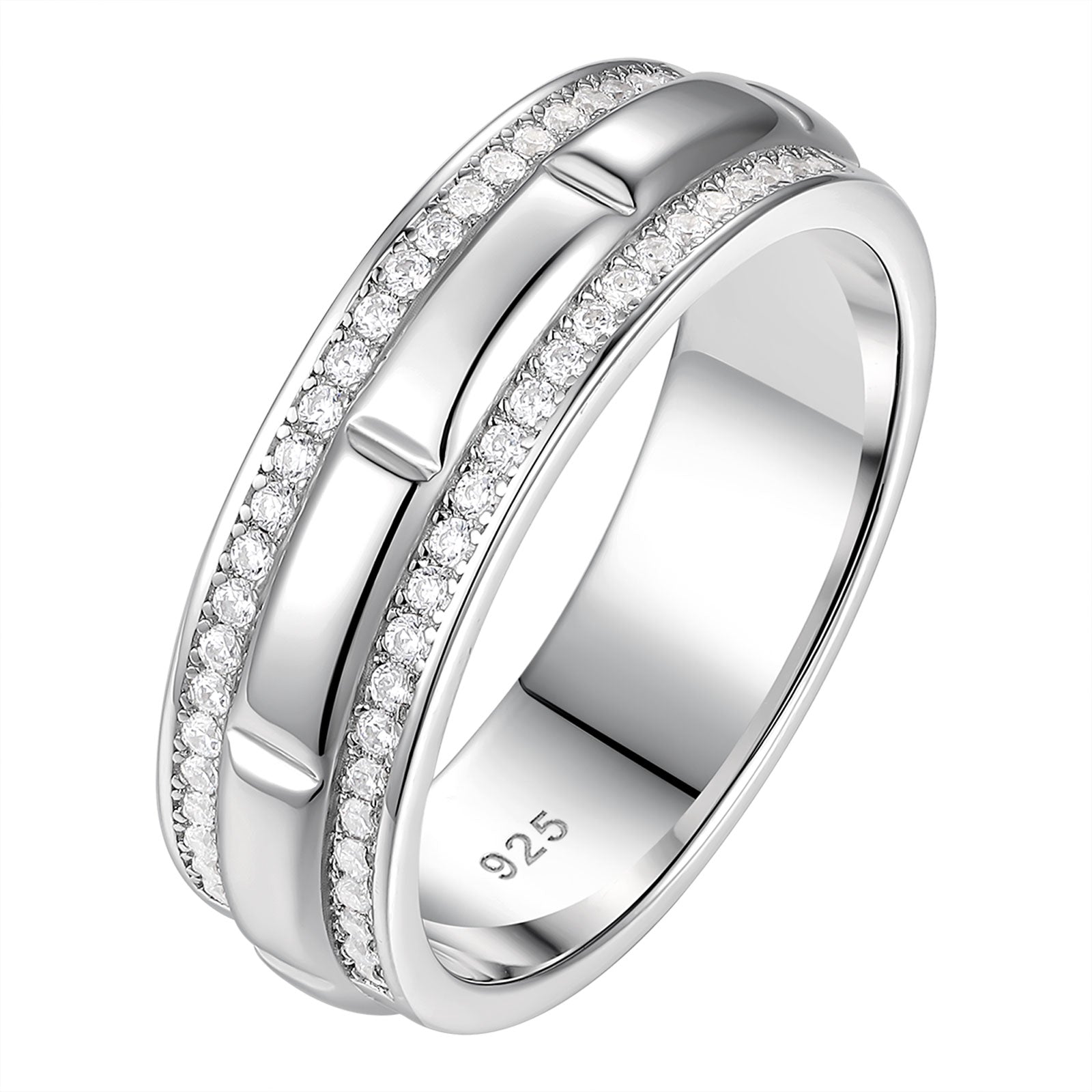 Newshe Mens Wedding Ring Band 925 Sterling Silver With Double Row Round Cut Cubic Zirconia Promise Ring For Him Size 5-10
