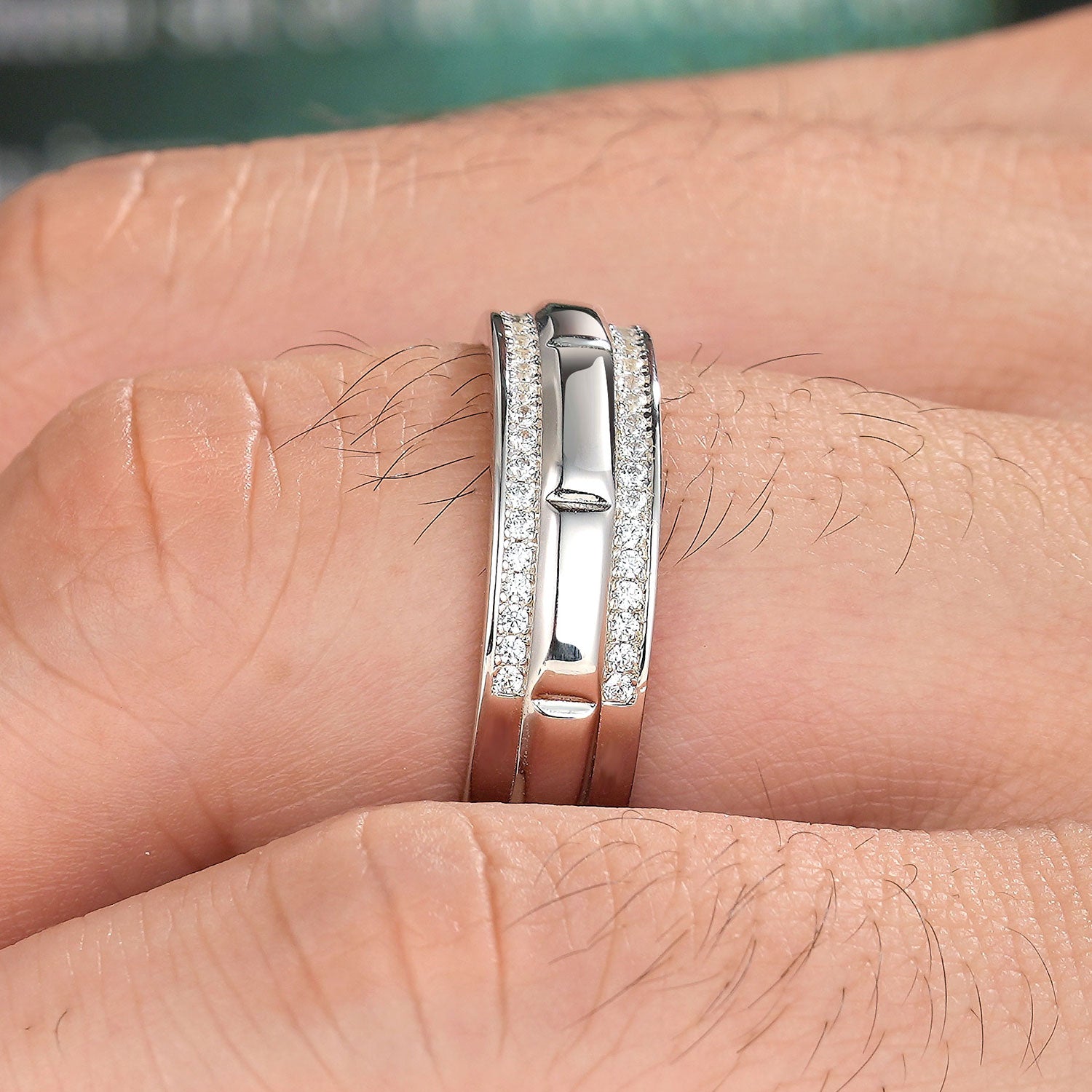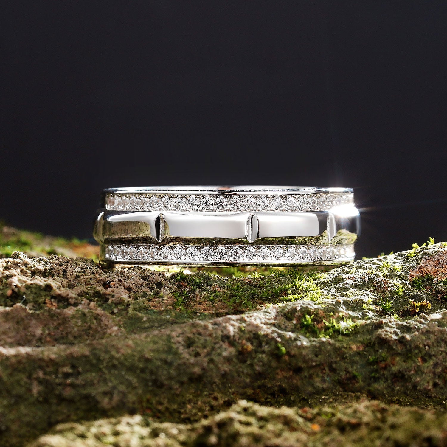 - ♥Quality and beauty♥ This wedding band for men are solid sterling silver 925 stamp, nickel free, lead free, hypoallergenic. the sterling silver rings won't turn your finger green. Rimmed with 50 cubic zirconia stones, this men's ring is a fashionable way to symbolize your love.