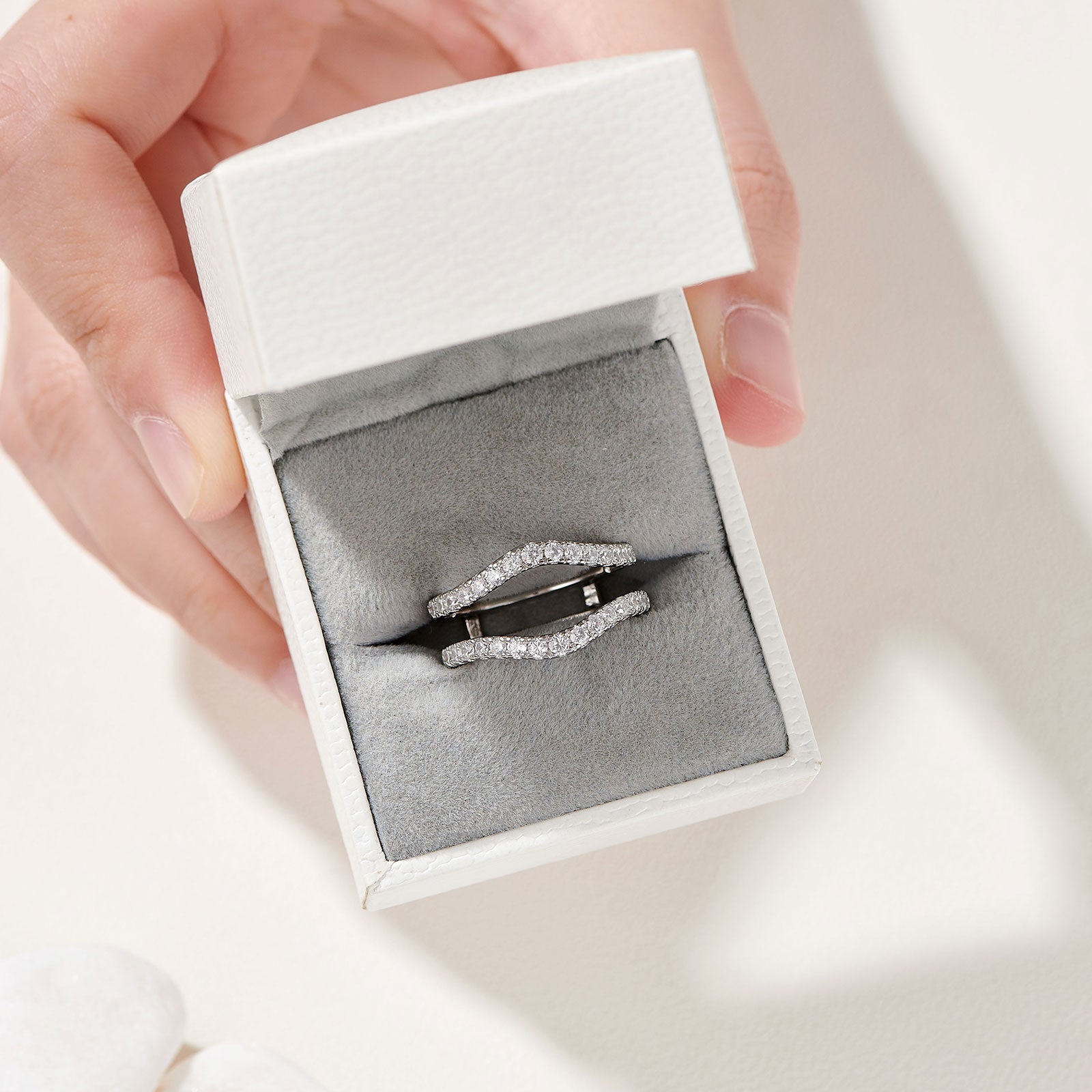 Newshe Jewellery Beautiful petite 1 piece D Color VVS1 Moissanite engagement ring enhacer with gorgerous design. The stunning ring guard for women are crafted from 925 Solid Sterling Silver, which will add crazy spark to your original cubic zirconia or moissanite or even diamond rings.
