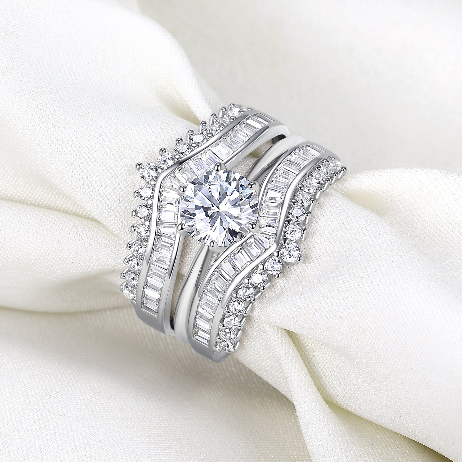 - ♥Specification♥ Main Stone Size: 7.0*7.0mm, 1.25 CTTW. Round cut cubic zirconia wedding sets for women. This 2 in 1 ring enhancer womens wedding ring sets include the engagement rings for women and cz wedding bands. Minimal women's bridal rings sets made for everyday wear!