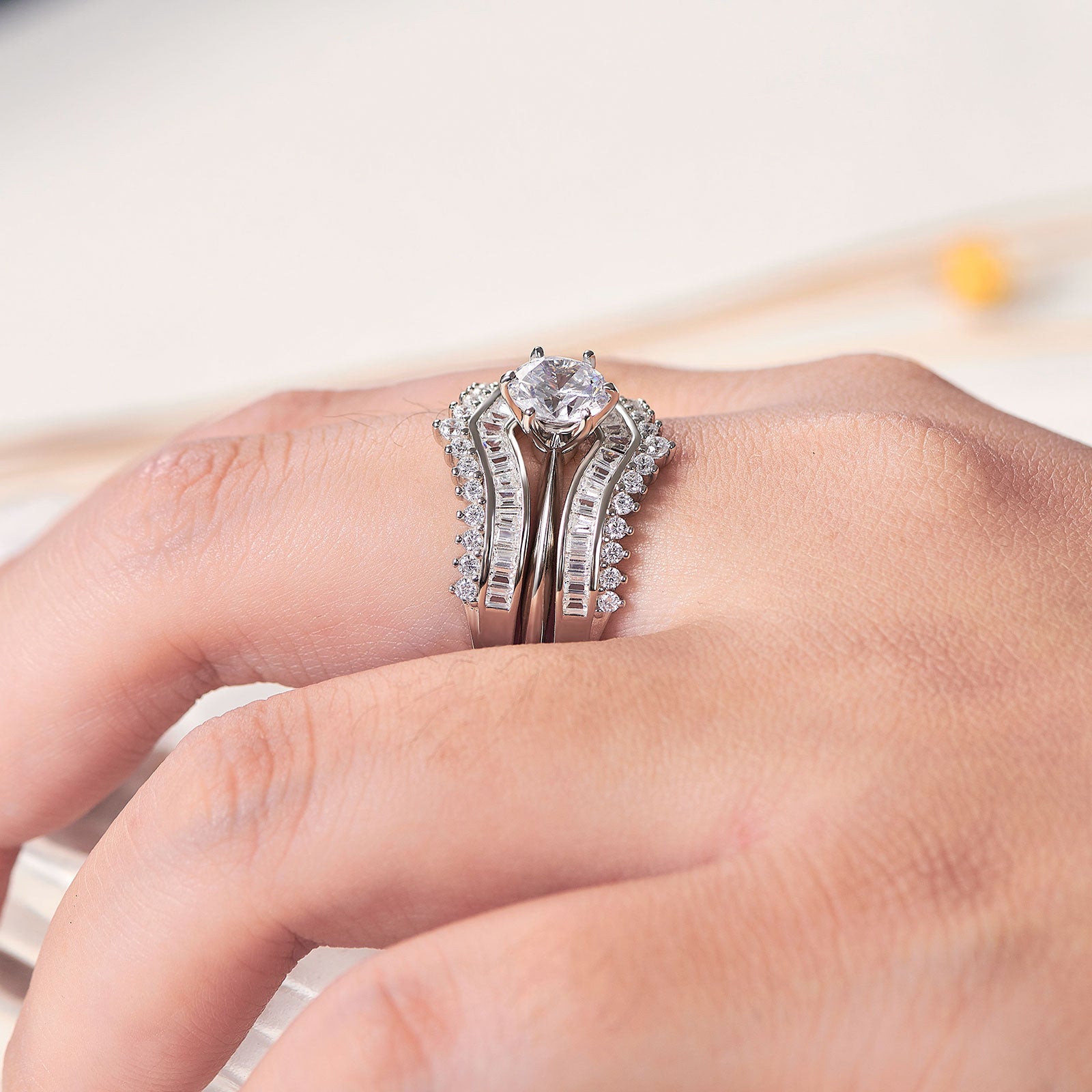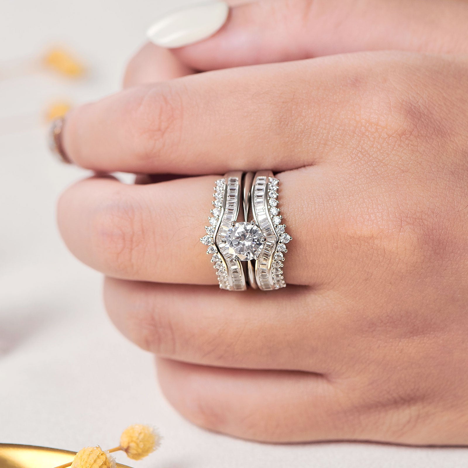 - ♥Material♥ Newshe wedding rings for women are 100% Solid Sterling Silver/ 925 stamp, nickel-free, lead-free, hypoallergenic. The sterling silver wedding sets for women won't turn your finger green.